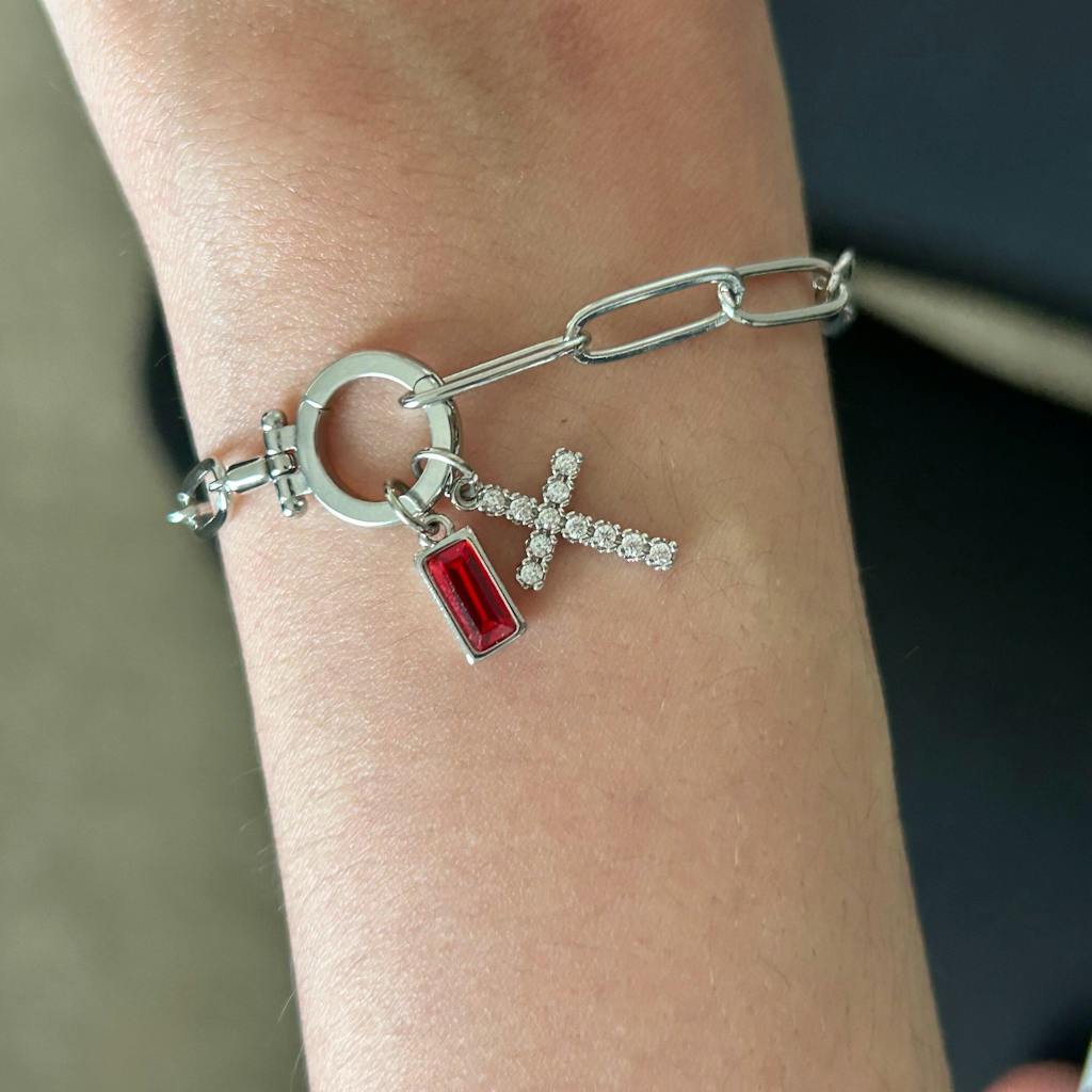 Carry meaning with you every day. The Paperclip Cross & Birthstone Bracelet combines a modern link chain with a sparkling cross charm and a gemstone of your choice. Designed to balance timeless sentiment with effortless style, it’s the perfect piece for both daily wear and special occasions. Whether it symbolizes your faith, honors someone you love, or reflects your personal strength, this bracelet is a beautiful way to share your story with elegance and grace.