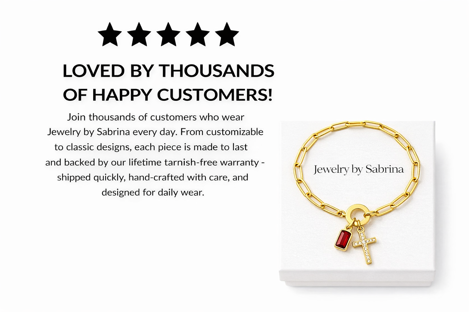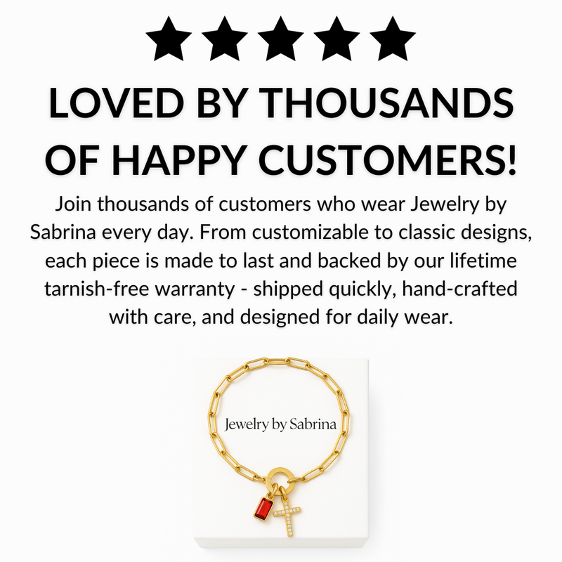 Every piece from Jewelry by Sabrina is protected with a Lifetime No-Tarnish Warranty. If your jewelry ever loses its shine or doesn’t meet our quality standards, we’ll repair or replace it — guaranteed. Shop with total confidence knowing your purchase is fully protected.